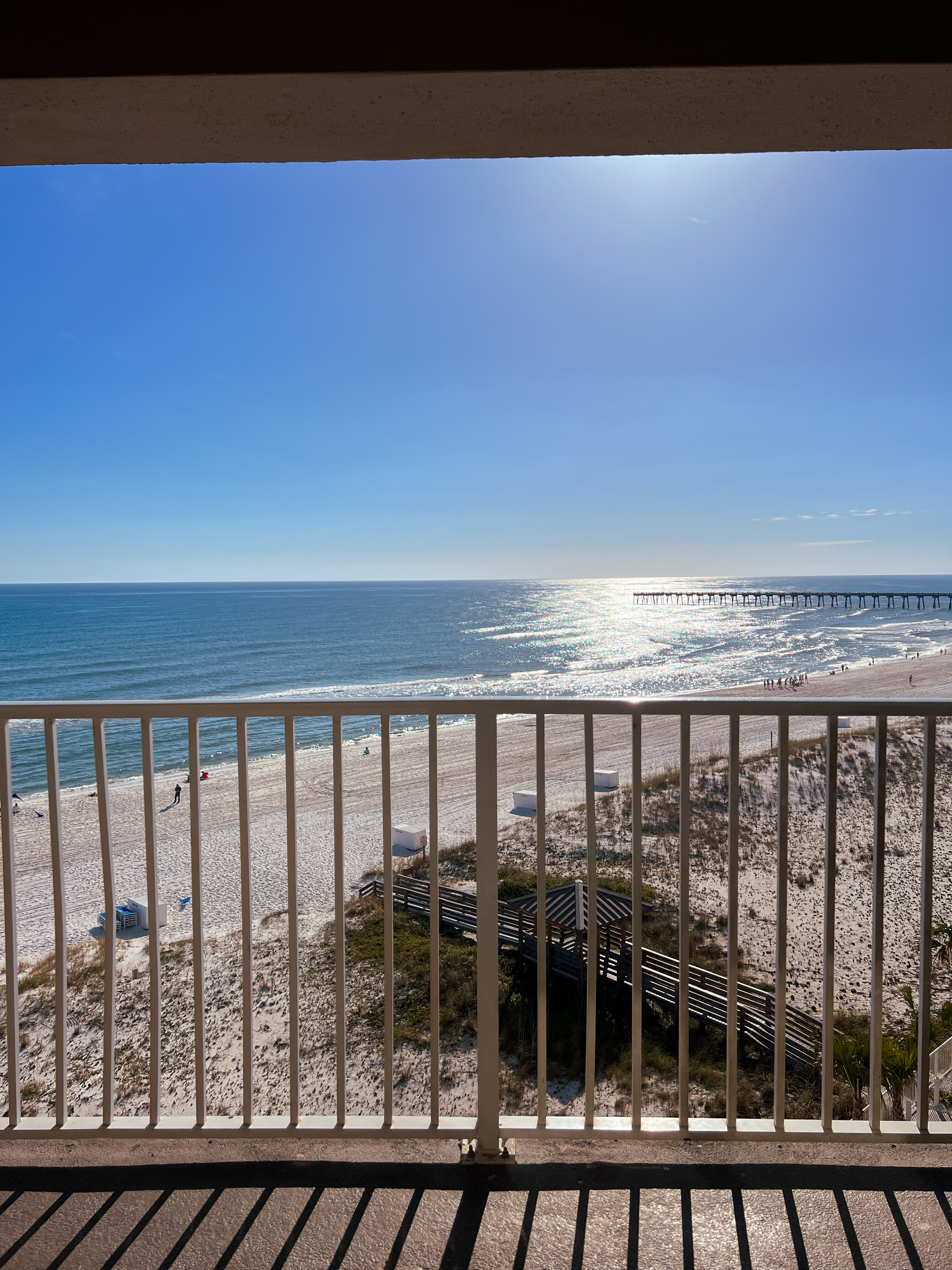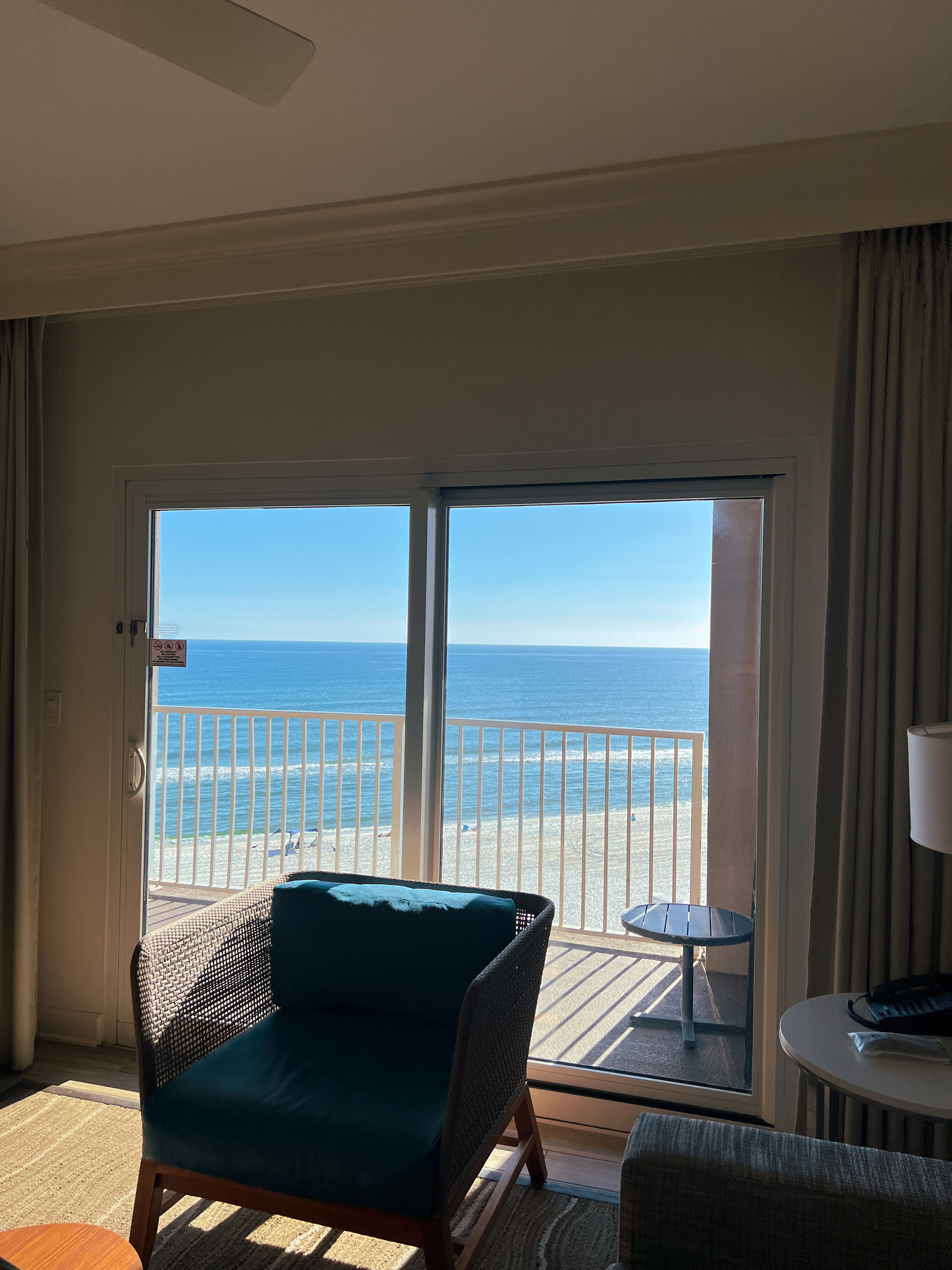 On Friday after our lunch at Whiskey Joe’s, we walked along the little pier that the restaurant sits on. Teeming with little fish and sea birds, we walked the pier and sipped our Whiskey Joe’s to-go lemonades as we watched the little waves and crabs scuttle along the bottom of the ocean. The restaurant is also just steps away from beach shops like Ron Jon Surf Shop, so we made sure to stop in and take a look while we waited for our hotel. There is also the much larger Pensacola boardwalk right across the street with free parking in front, another great way to spend time enjoying the ocean views before ever even checking into the hotel!