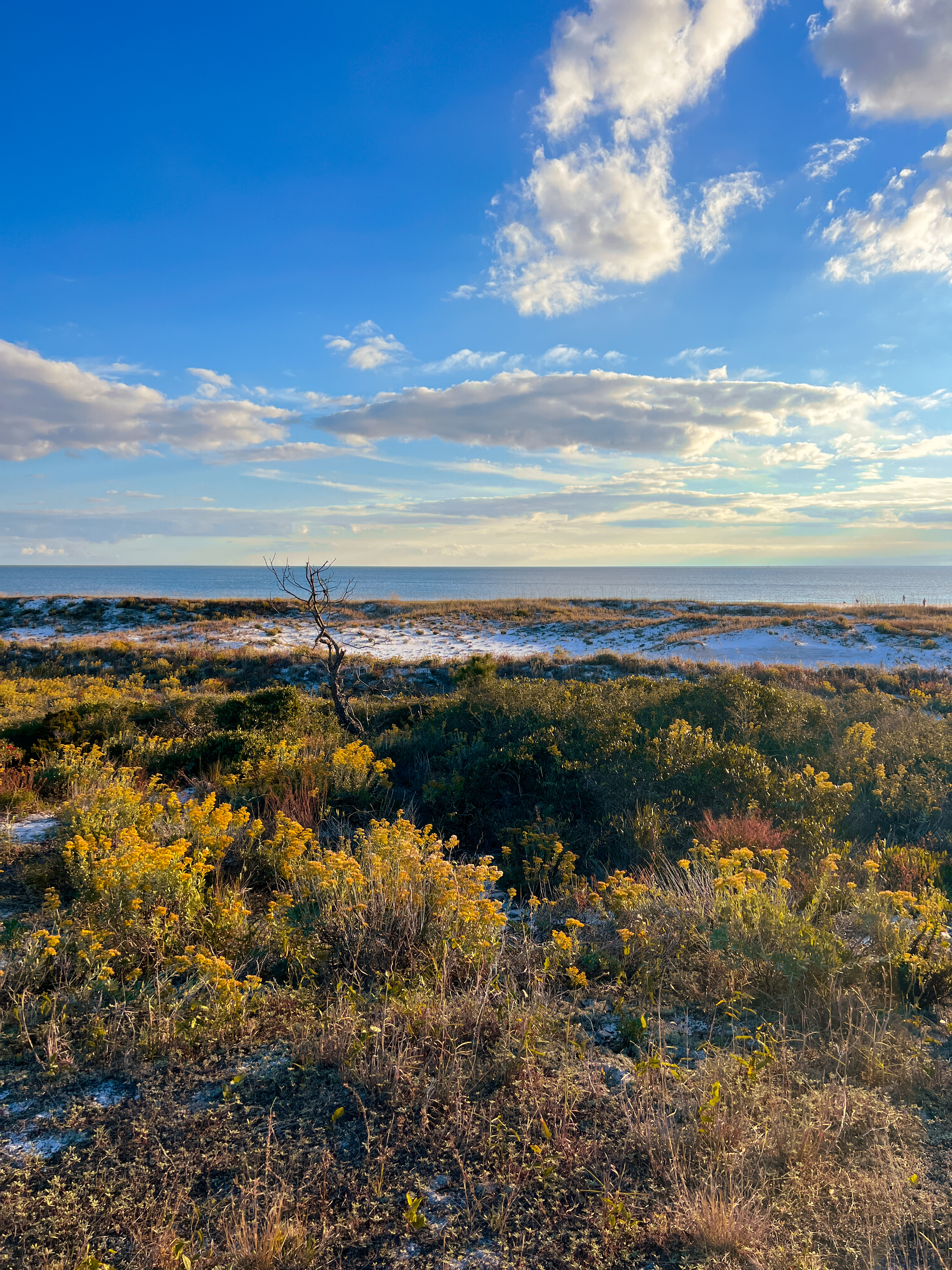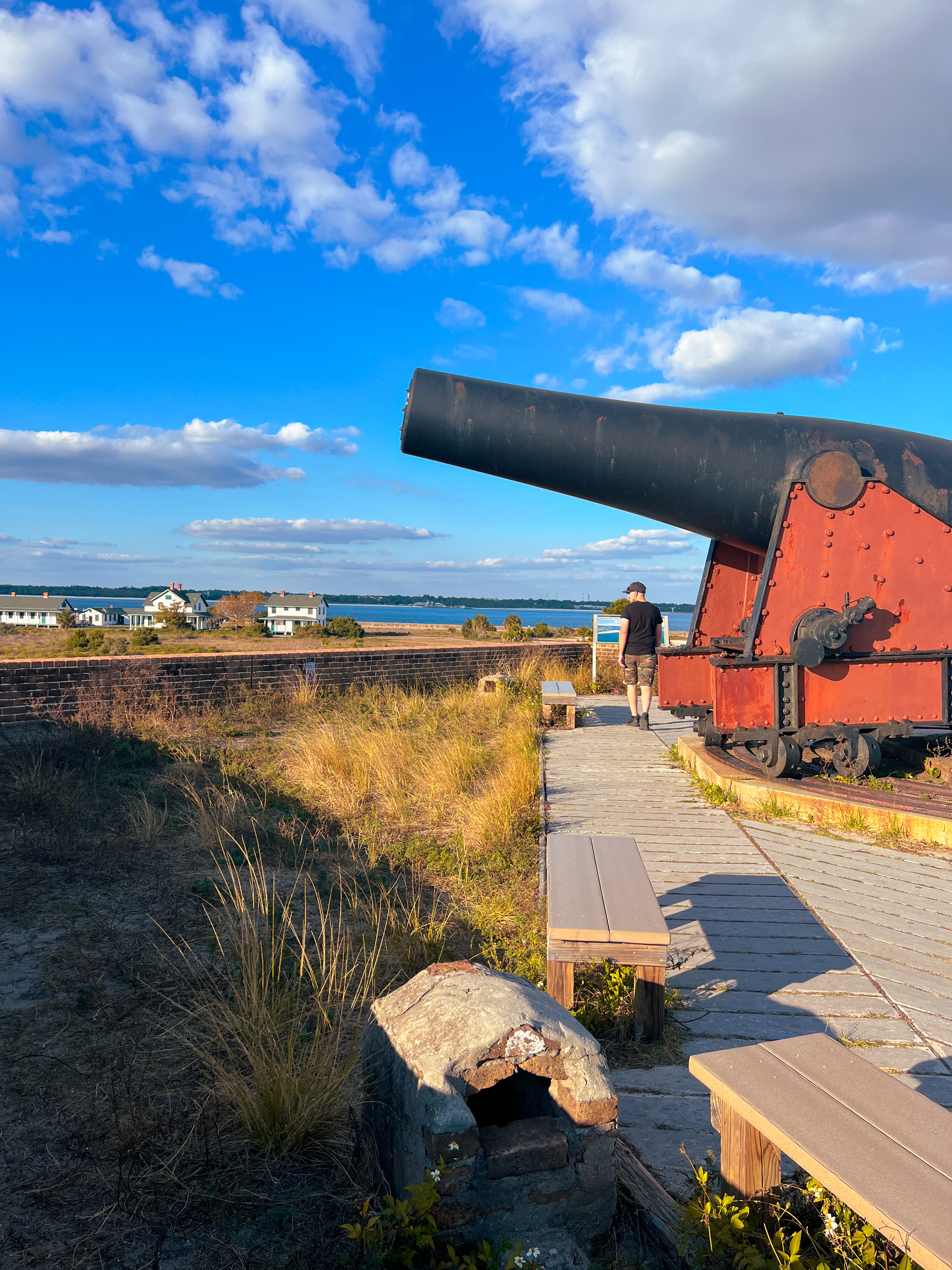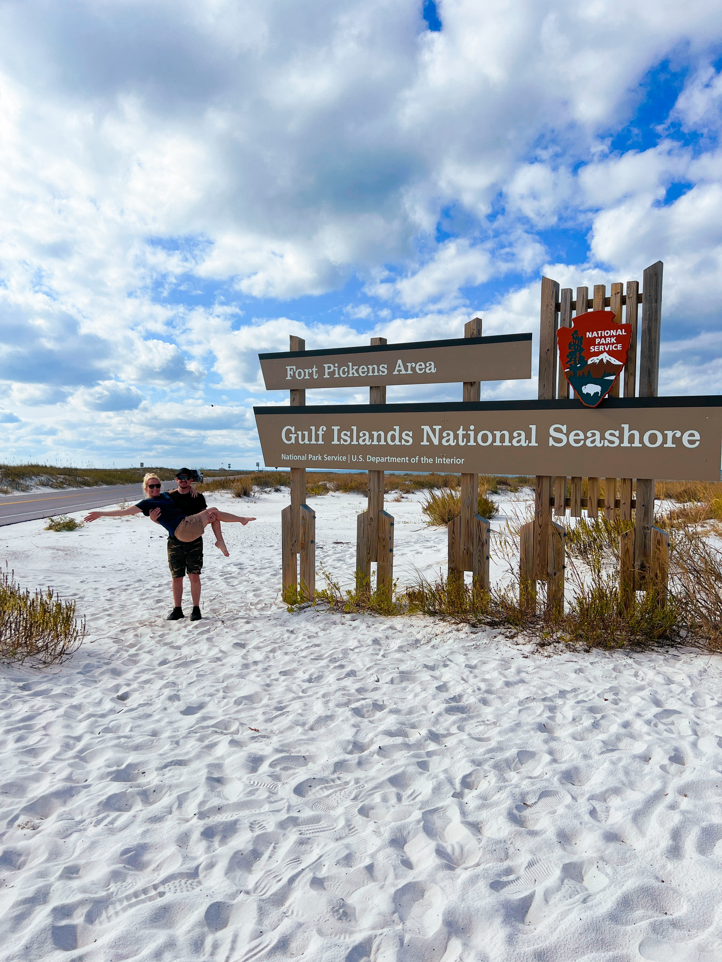 After our beach walk, we headed to lunch right across the street to Red Fish Blue Fish to fuel up for our most anticipated activity of the trip: exploring Gulf Islands National Park! I knew this was a must do for us as two people who love exploring outdoors and history. The drive into the park felt unreal, almost untouched with the rolling sand dunes and grasses with views of the ocean on both sides.